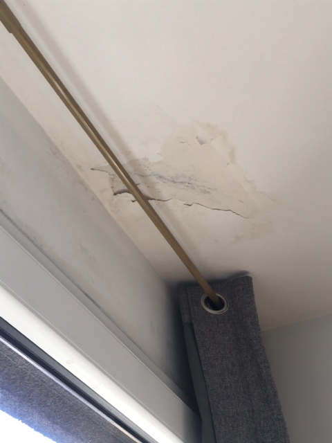 Par ailleurs, je vous joins également des photos du plafond de la chambre sur rue qui fait apparaître des traces d’humidité. Nous souhaiterions également avoir un retour sur les problèmes d’inflation des étages supérieurs ?